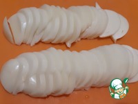 Нарезать моцареллу тонкими небольшими пластинками. |