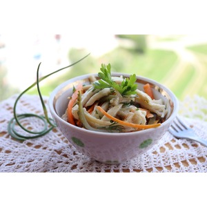 Описание: Рубец довольно специфический продукт, не всем он по душе из-за специфического запаха. Но кто его любит, тот знает массу вкусных рецептов. Я предлагаю приготовить из рубца острый салат с овощами в стиле корейских закусок.