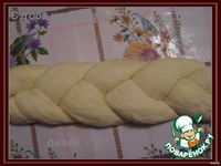 Подошедшее тесто обмять,(можно просто сформировать кирпичик и выпечь в форме для хлеба),разделить тесто на три части,каждую раскатать в прямоугольник и с широкой части свернуть в плотный рулетик. |