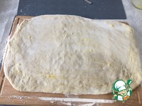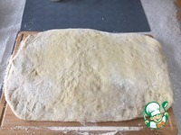 Раскатываем тесто на пласт прямоугольной формы толщиной около 5 мм. |