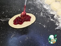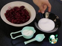 В кастрюльке вишню пересыпаю крахмалом, сахаром, ванилином, перемешиваю... |