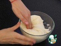 В емкость смазанную растительным маслом кладу тесто, накрываю пленкой и убираю в теплое, без сквозняков место на 1,5-2 часа. Тесто должно подойти и увеличиться вдвое. |