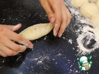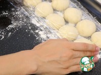 ... делю на 10 равных частей по 55-57г. каждая. Округляю, накрываю пищевой пленкой. |