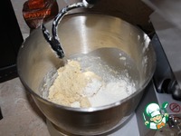 В чашу миксера добавляем большую часть муки, дрожжи, кефир, соль и соду. |