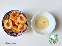 Абрикоски помыть, обсушить и разделить на половинки. Яйцо взбить слегка вилкой. |