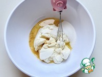 Рикотту, сахар, ванильную эссенцию и половину яйца перемешать венчиком до однородной массы. |