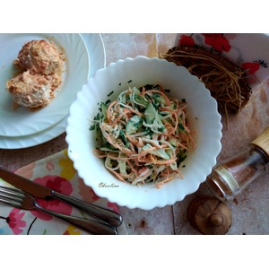 Описание: Сезон местных овощей. Овощи прямо с огорода - столько в них пользы и витаминов. Предлагаю вам свежий салат из репы, моркови и огурца, который подойдёт в летние жаркие дни и в качестве гарнира к основному мясному блюду, а так же в качестве дополнения к гарниру.