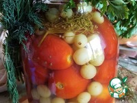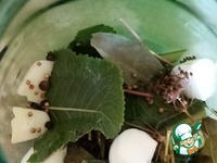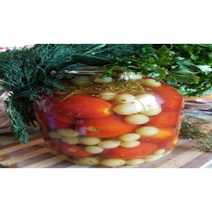 Когда банки остынут, накрываем их специальной крышкой и сливаем воду в кастрюлю. Ставим ее на огонь. Доливаем немного воды, т. к. в процессе приготовления маринада вода немного выкипит, и ее может не хватить для заливки. Когда вода закипит, засыпаем в маринад соль, сахар, наливаем мед и уксус. Ингредиенты рассчитываем по количеству банок, слитых в кастрюлю. Н 1 баллон идет 1 столовая ложка соли, 1 столовая ложка сахара, 2 столовых ложки меда, 50мл (рюмка) уксуса. (Например: вы слили в одну большую кастрюлю воду с 4 банок помидор, для маринада нужно высыпать это количество ингредиентов, умноженное на 4) Кипящим маринадом заливаем банки до самого верха и закатываем. Переворачиваем вверх дном и укутываем до полного остывания. |