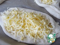 Сверху присыпать тертым сыром моцарелла. Выпекать пиде нужно в хорошо разогретой до 220*С духовке 10-13 мин. (следите за своей духовкой). |