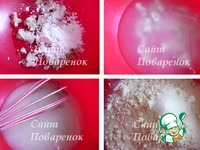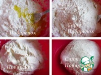 В миску для замеса теста раскрошить дрожжи, добавить сахарную пудру, влить воду, перемешать венчиком, чтобы дрожжи растворились. Добавить часть муки. |