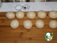 Форму застилаем пергаментом. Укладываем булочки в форму. Оставляем на расстойку на 30 минут. |