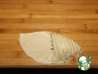 Заворачиваем целый край на край с надрезами. Выкладываем начинку. |