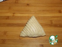 Раскатываем в круг толщиной 3-4 мм. На половине круга делаем надрезы не доходя до края. |