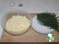 Готовим начинку. Сыр натираем на крупной терке. Укроп мелко нарезаем. |