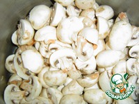 1. Берем шампиньоны, моем, обрезаем ножки и, если грибы крупные, режем их |