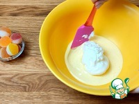 Желтки взбиваем с сахаром и ванильным сахаром. К желткам добавляем белки и мучную смесь. Замешиваем бисквитное тесто |