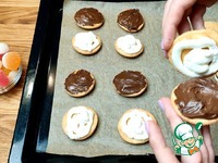 Смазываем пирожные нутеллой и кремом, соединяем |