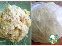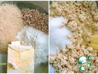 Приготовить тесто: соединить измельченное ядро абрикосовой косточки, муку, овсяные хлопья, ванилин, разрыхлитель и масло. Перетереть все в масляную крошку. Добавить сахар и яйцо. |