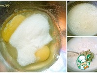 Приготовить заливку: яйца взбить с оставшимся сахаром пять минут, воспользовавшись миксером. Добавить сметану, ванилин, ревеневую смесь, грецкий орех и все перемешать. |