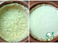 Разогреть духовку до 180 градусов. Тесто переложить в форму для запекания и сформировать корзинку с бортиками. Диаметр формы 22 сантиметра. В середину залить заливку. |