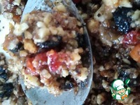 Промыть любые сухофрукты без косточек и залить кипятком на 10 минут для придания мягкости. Всего сухофруктов mix горсть. |