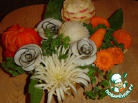 Описание: Такие хризантемы могут украсить самый изысканный стол!!! Красота таких хризантем просто поражает и завораживает взгляд! Ими можно украсить как блюда, так и композиции и букеты из цветов, вырезанных из овощей.