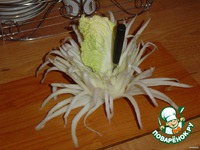 Вырезанную хризантему положить в ледяную воду. Если кончики лепестков будут достаточно тонкие, то в воде они красиво загнутся. |