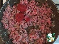 Добавим томатную пасту. Посолим, поперчим, добавим чили, паприку, тмин, орегано. Готовить пару минут. |