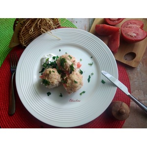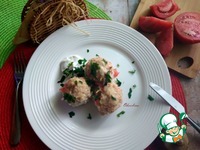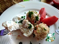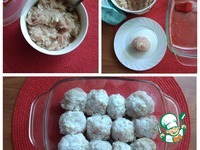 Делаем фарш куриный или берём готовый. Добавляем в фарш лук репчатый, чеснок, мелко порезав всё. Солим, перчим и всё тщательно соединяем. Выкладываем рис не варёный, опять всё соединяем. Если будут есть дети, то не перчите, это сделать можно в готовом блюде. Накрываем фарш для тефтелей крышкой, пусть немножко постоит. Яйцо не нужно добавлять в куриный фарш, тефтели будут плотнее и не такие сочные. Далее насыпаем в тарелку муку рисовую, которую можно заменить пшеничной. Я буду панировать в ней сформированные тефтели. Обмазываем форму маслом и выкладываем в неё сформированные и обвалянные в муке тефтели. Из этого количества фарша получилось 12 шт тефтелей D~4-5 см. |