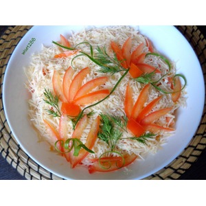 Описание: Набор продуктов в этом салате весьма доступный, но в комбинации они дают необыкновенный результат. Благодаря ярким овощам слои салата выглядят очень нарядно, а за счёт сыра и яиц он получается очень нежным и имеет свой неповторимый вкус.