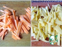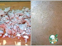Отварить куриную грудку минут 30 и нарезать на небольшие кусочки. Бульон процедить. |