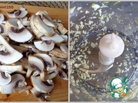Грибы нарезать полупластинками. Чеснок измельчить. |