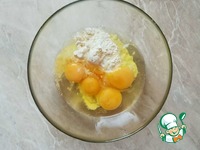 Взбить яйца с мукой. Соду и соль можно не добавлять. Тесто должно получиться как на оладьи. |