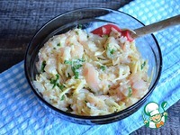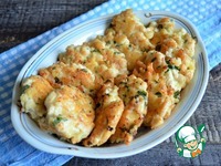 Перемешать грудку, лук, сыр, зелень, яйцо, отставить на 10 минут, для набухания манки. Нам соли хватило от лука и сыра, но можно и подсолить слегка. |