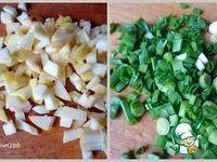 Яблоко порезать кубиком. Зеленый лук колечками. |
