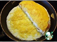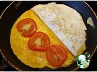 После всех наших манипуляций получается вот такая красота и вкуснота... Количество порций определить довольно таки сложно - всё относительно... Для меня этого количества омлета хватит только чтобы ненадолго "заморить червячка", жене же хватит на два полноценных приёма пищи, так что ориентируйтесь по едокам и их метаболизму...