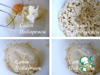 Для теста, в чашу миксера всыпать сухие ингредиенты. Добавить яйцо и мягкое масло. Взбить миксером обычными венчиками 30сек., получилась крошка. Собрать лопаткой, слегка присыпать мукой. |