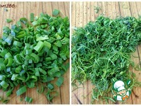 Ароматную зелень: базилик, любисток, кинзу нарезать мелко. |