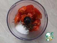 Приготовить соус. Взбить в блендере помидоры, чеснок и базилик, оливковое масло, сахар и соль. Дать немного настояться. |