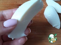 Моцареллу нарезать в виде брусков длиной 5-8 см. |