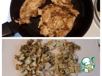 Добавить к овощам курицу и болгарский перец, нарезанный кубиком. |