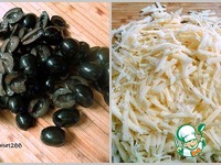 Оливки освободить от жидкости и порезать пополам. Сыр нашинковать. |