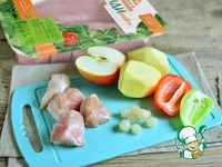 Подготовить ингредиенты - очистить картофель, индейку - на кусочки. |