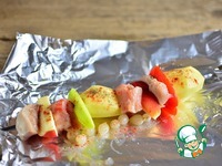 Описание: Очень вкусный и полезный порционный ужин в фольге, приготовленный на углях. Грудка индейки с картофелем, перцем, сладким яблоком и маринованным луком! Готовить просто, удобно подавать на природе, не требует даже тарелок, а само блюдо насыщенно ароматами ингредиентов и специй.