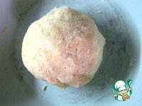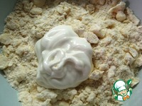 Замесить тесто руками, собирая его в шар (если тесто продолжает липнуть к рукам - добавить чуть муки, если же продолжает рассыпаться - чуть сметаны). |
