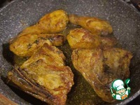 Бедра или голени обмыть, обсушить. Посолить и поперчить по вкусу. Выложить в миску и залить маринадом. Выдержать 30 минут. Затем слегка обжарить на оливковом масле с двух сторон. |