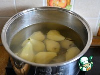 Груши очистить от кожуры, укладывать в подготовленную кастрюльку с водой и соком лимона. Поставить на огонь и варить после закипания 15 минут. |