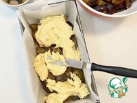 Форму ( у меня 23 x 12 см ) выстелить пергаментом. Добавить половину теста и разровнять. Сверху равномерно выложить половину сливы и посыпать 1 ст. ложкой смеси сахара с корицей. |