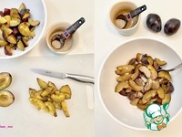 Сливу помыть, удалить косточку и порезать на кусочки. 3 ст. ложки сахара смешать с корицей. Посыпать сливу 1 ложкой сахара с корицей и перемешать. Отставить в сторону. |