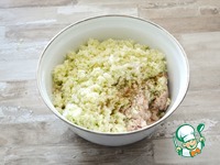 Цветную капусту нарежьте произвольно и измельчите вместе с петрушкой в процессоре (или через мясорубку) в мелкую крошку. |